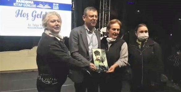 20-26 Eylül 3. Bandırma Kitap günlerine konuk olan ve Cumhuriyet alanındaki, etkinlik sahnesinden alanı dolduran kalabalığa seslenen CHP gurup başkan vekili Manisa Milletvekili Özgür Özer, geceye katılan parti kurmayları ile çekildiği final fotoğrafı sonrası öne çıkan Bandırma Muhtarlar derneği Başkanı ve Haydarçavuş Mahallesi Muhtarı Nur Hancıoğlu sürpriz hediyesi ile geceye damgasını vurdu.