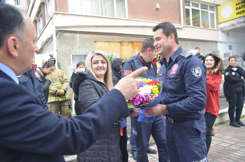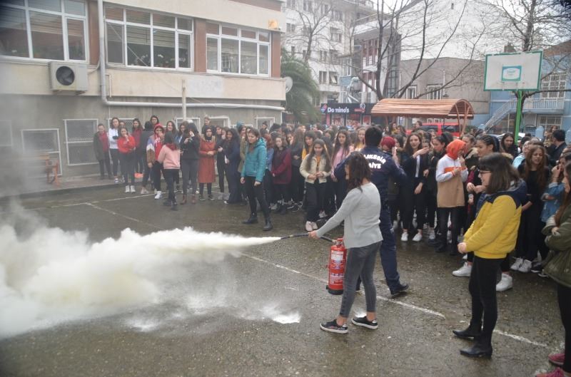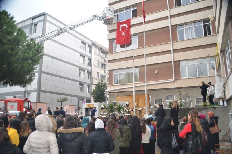 Balıkesir Büyükşehir Belediyesi İtfaiye Müdürlüğü’ne bağlı Bandırma Grup Âmiri Mustafa Demir, öğretmen ve öğrencilere önce arama-kurtarma ve yangın konusunda teorik bilgiler verdi. Ardından, verilen alarmla birlikte tatbikata geçildi. Tatbikatta, bir öğrenci, merdivenli kurtarma aracıyla dördüncü kattan aşağı indirildi. Daha sonra bahçede yangın söndürme tatbikatı yapıldı. Tatbikat, okul müdürünün, Mustafa Demir’e çiçek sunumuyla sona erdi.