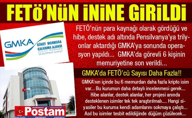 FETÖ´nün para kaynağı olarak gördüğü ve hibe, destek adı altında Pennsylvania´ya trilyonlar aktardığı GMKA´ya sonunda operasyon yapıldı... GMKA´da görevli 6 kişinin memuriyetine son verildi...