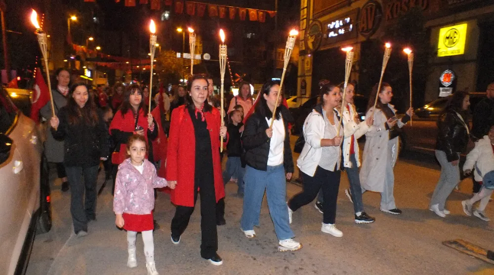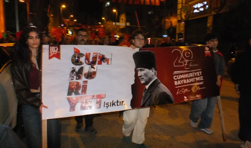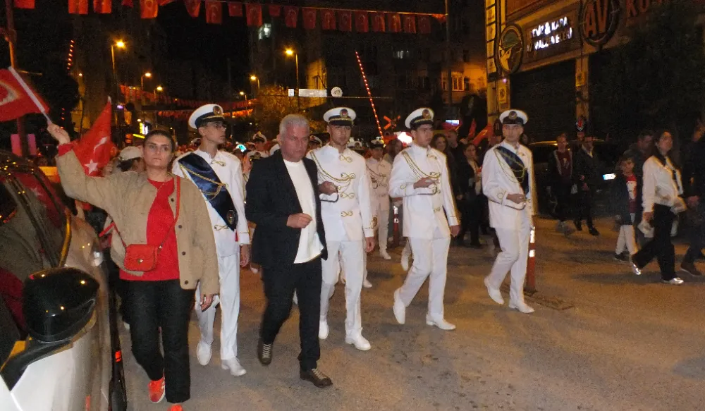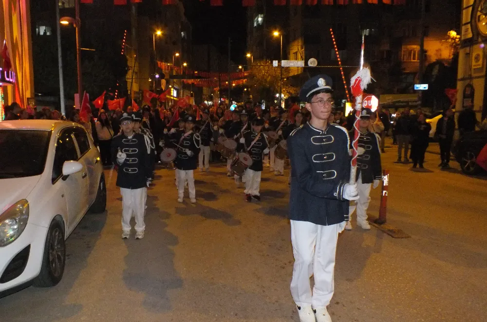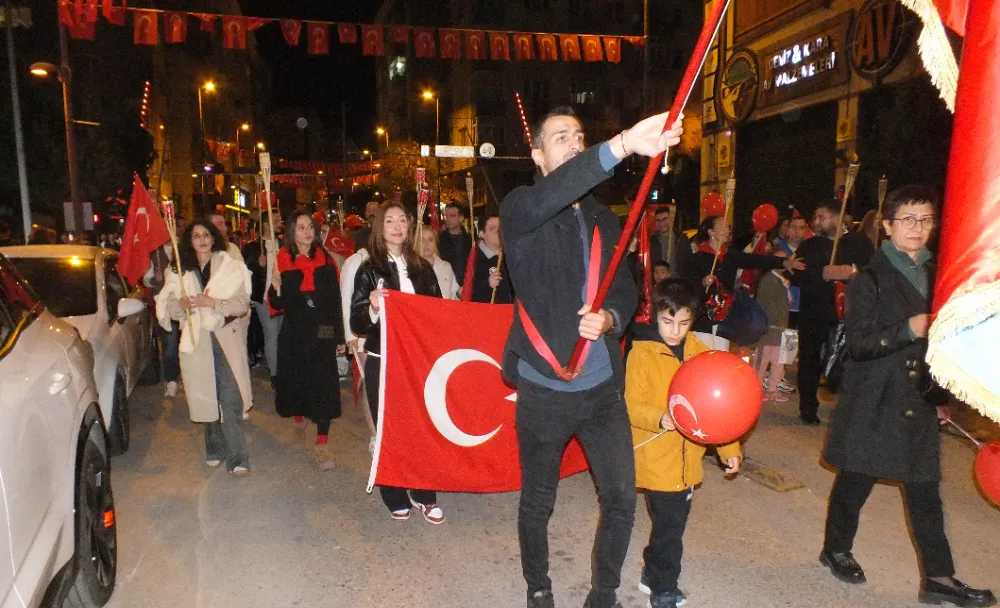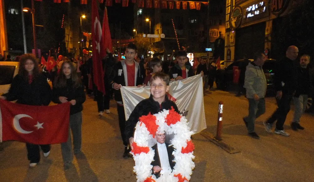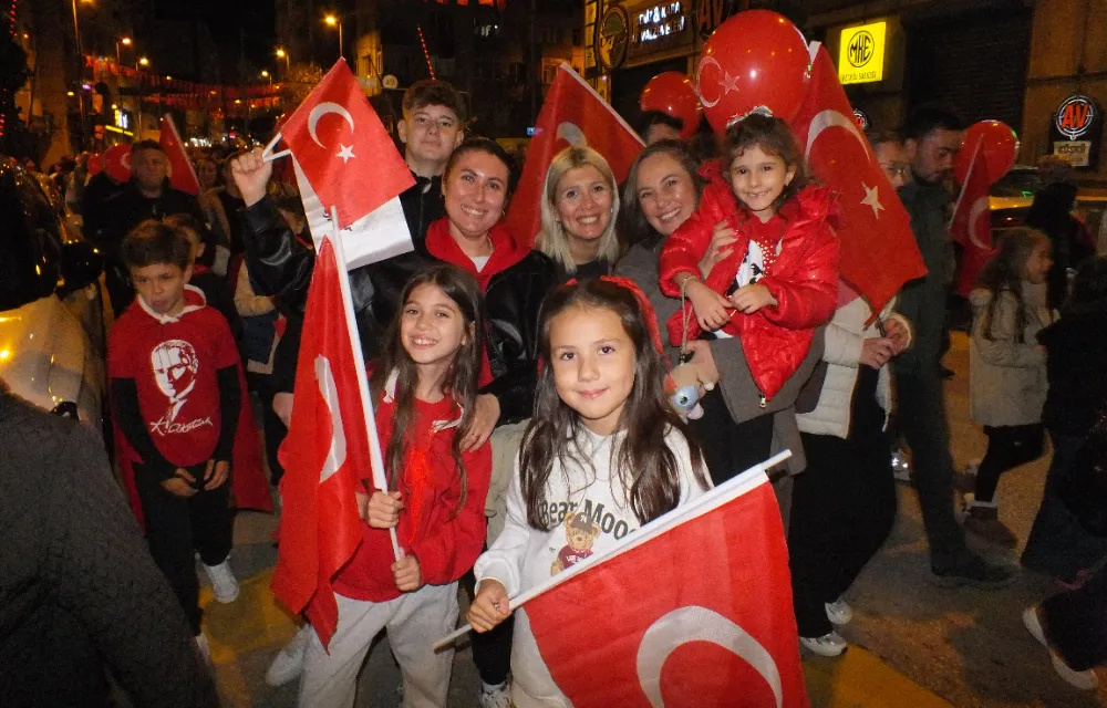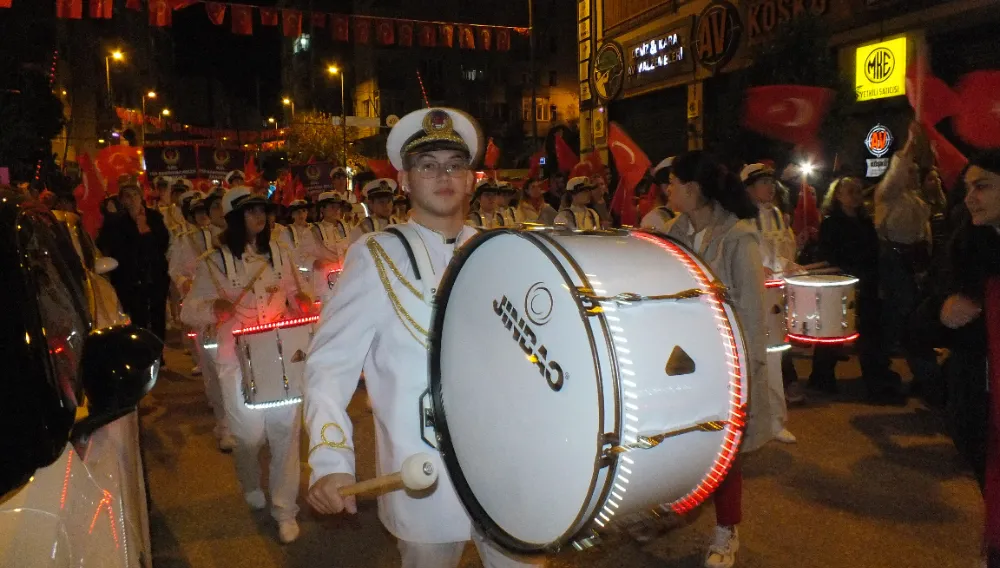 Ordu caddesinde bir ucu Miğros kavşağında, diğer ucu Cumhuriyet alanında olan fener alayında 100 mt bayrak açıldı. Gençler metrelerce uzayan bayrağın kenarından tutabilmek için sıra bekledi.