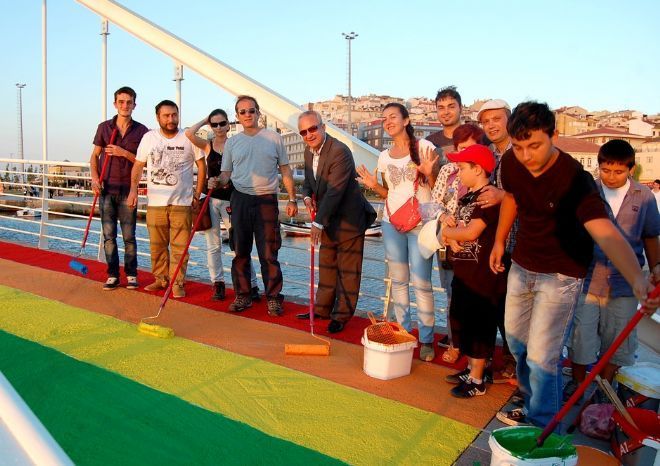 Bir grup gencin kırkmerdiven olarak bilinen yerde gerçekleştirdikleri boyama çalışmasından sonra, şimdi de sahilde bulunan köprü gökkuşağı renklerine boyandı.