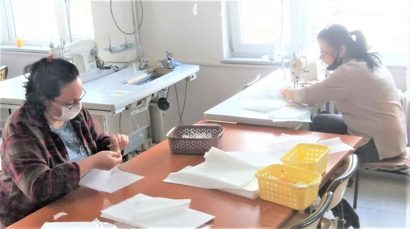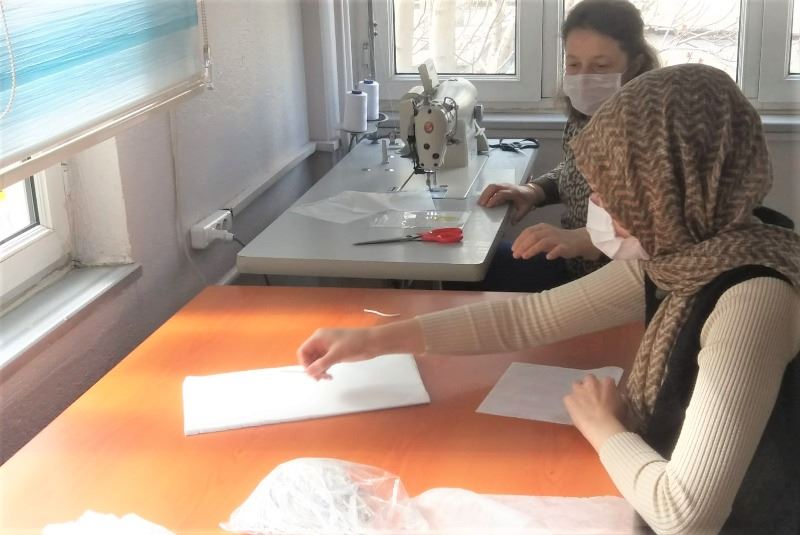 Kadrolu ve usta öğretici görevlilerin yanı sıra gönüllü kursiyerlerin de katıldığı maske üretiminde günlük 500 maske üretimi ile başlandı. Personelin büyük gayretleri ile günde 1250 adet maske üretilmeye başlandı.