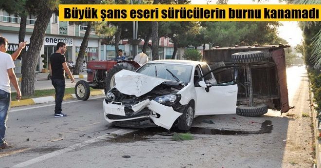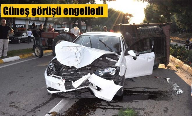 Gözünü güneş alan 34 UU 1699 plaka sayılı özel otomobil sürücüsü Ahmet İzgin, önünde seyreden Traktörün römorkuna arkadan çarpması çok tehlikeli bir kazaya neden oldu.