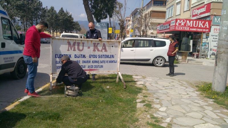 Edremit Belediyesi Zabıta Müdürlüğü ve Mali Hizmetler Müdürlüğü Gelir Şefliği’ne bağlı ekipler Encümen Kararı ile Ocak ayından itibaren başladığı çalışmalara ilçe genelinde devam ediyor. Ekipler yapılan denetimler sonucu kent estetiğini bozarak görüntü kirliliği yaratan, trafik akışını güvensiz hale getiren ve insan sağlığı açısından da tehlike arz ettiği tespit edilen yol kenarlarındaki reklam tabelalarını kaldırıyor. Zabıta ve Fen İşleri Müdürlüğü koordinasyonuyla Altınkum, İkizçay ve Güre Mahallesi’nde sökülen tüm tabelalar Edremit Belediyesi şantiyesinde emanete alınıyor.