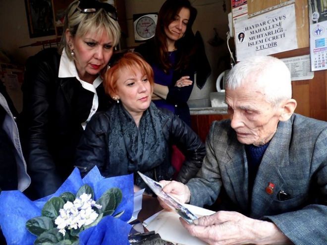 Haydar Çavuş Mahallesindeki muhtarlık devir tesliminde eski muhtar Hayrettin Karacan ile yeni Muhtar Nur Hancıoğlu eski fotoğraflara bakarak anı tazelediler.