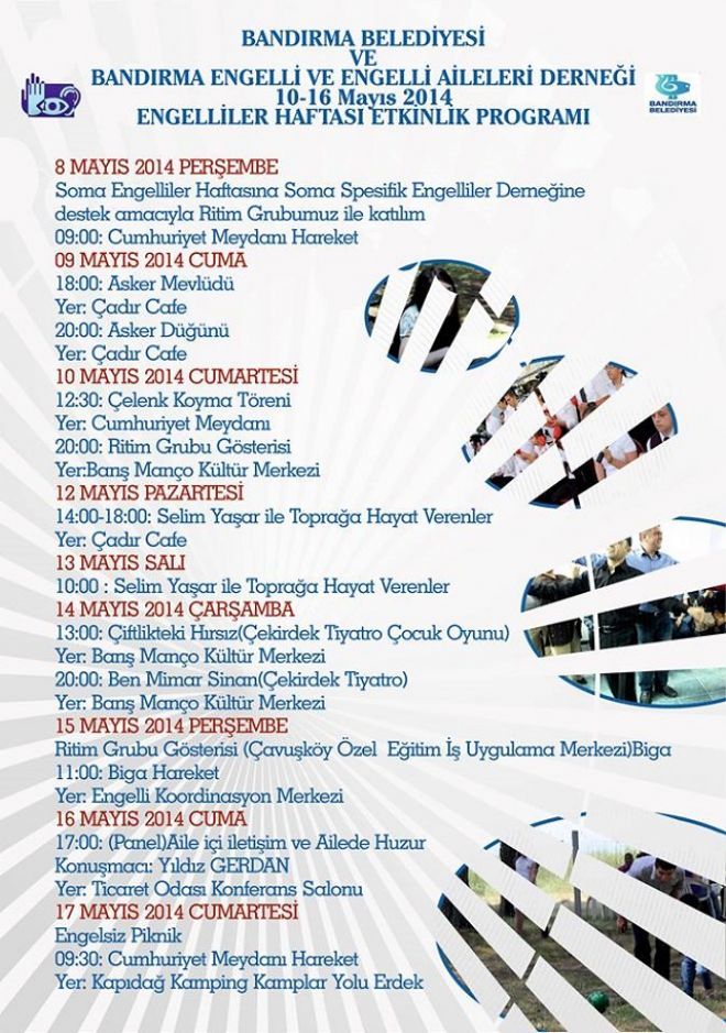 Dernek bünyesinde yer alan Ritim müzik grubu Bandırma Belediyesi ve Bandırma Engelli ve Engelli Aileleri Derneği işbirliğiyle düzenlen 10-16 Mayıs Engelliler Haftası etkinlikleri kapsamında ilk olarak Soma’da düzenlenen Engelliler Hafta etkinlilerinde sahne aldı. Engelliler Haftası kapsamında Soma Spesifik Engelliler Derneğine destek amacıyla verilen konser büyük ilgi gördü.