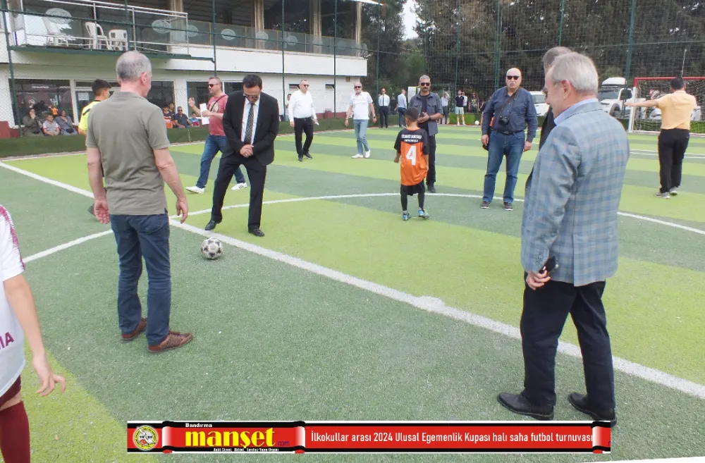 Başlama vuruşunu Yücel, Aslan, Ertunç ile birlikte Bandırmaspor Kulübü eski başkanlarından, iş adamı Adnan Erdan ve eski futbolculardan Yaşar Bekdemir yaptığı, “Ulusal Egemenlik Haftası” kapsamında 6 gün sürecek turnuvaya 8 ilkokuldan toplam 100 sporcu öğrenci katılıyor.