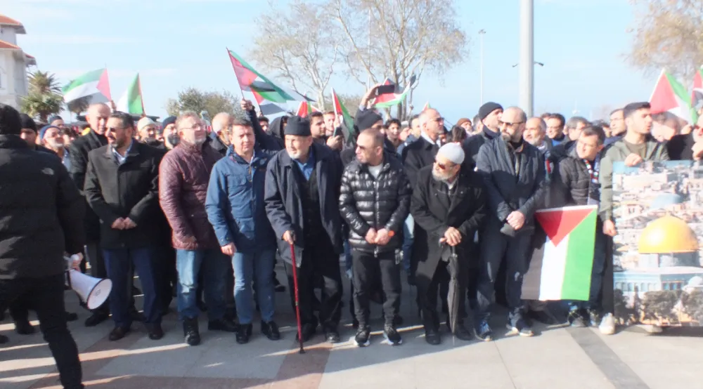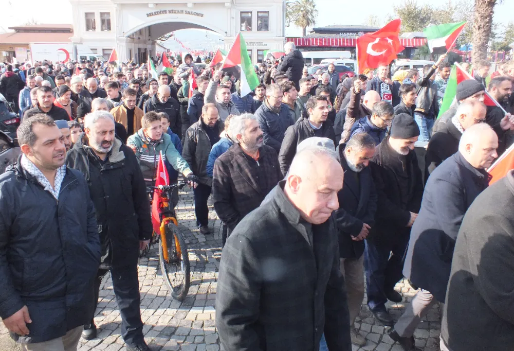 İDO peronu önünde toplanan vatandaşlar saat 13.30 sularında slogan atarak Cumhuriyet caddesini takiben Cumhuriyet alanına yürüdü, Önde çocuklar arkada vatandaşlarca oluşturulan kalabalık Cumhuriyet alanına gelindiğinde saygı duruşu ve istiklal marşı okundu.