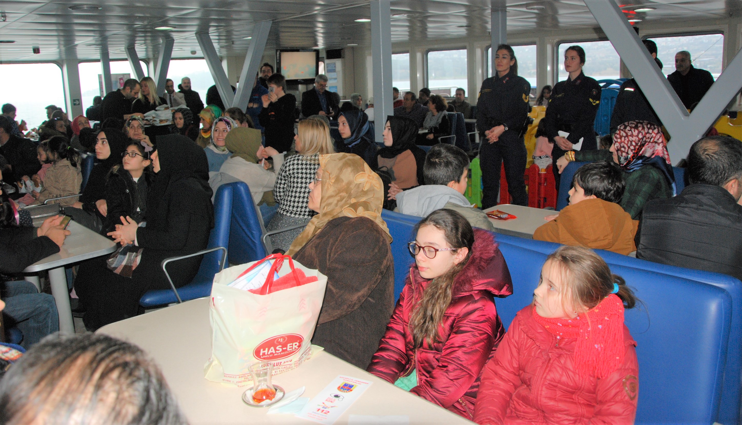 Misafirlerine sunduğu hızlı ve keyifli yolculuklarla sektörünün lideri İDO, Kocaeli İl Jandarma Komutanlığı iş birliği ile 17 Ocak 2020 günü, Eskihisar- Topçular hattında gidiş- dönüş yolculukları sırasında “Kadına yönelik şiddete” karşı farkındalığı artırmak amacıyla bir seminer düzenledi. İDO’nun yolcu yoğunluğu olan hatlarından biri olan Eskihisar- Topçular hattında gerçekleştirilen seminer, eğitici video gösterimleriyle tamamlandı.