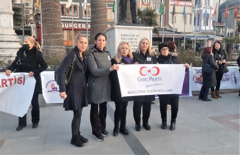 Bandırma Kadın Dayanışması Platformu, bileşenleri sözcüleri tek tek söz alarak olayı kınadılar.