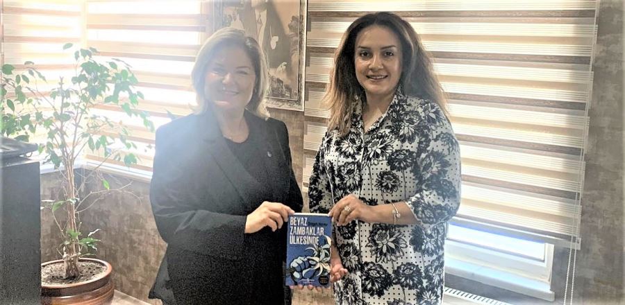 DEVA İlçe başkanı Dr. Ayşegül Özdemir, Bansiad Başkanı Funda Dedeoğlu'na Grigory Petrov’un Beyaz Zambaklar Ülkesinde eserini armağan etti.
