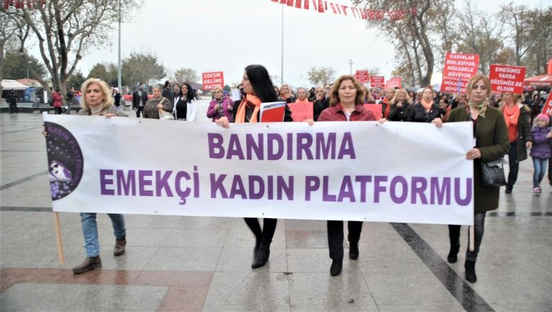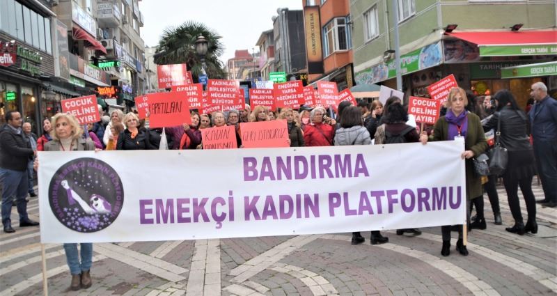 “Bandırma Emekçi Kadın Platformu”, “25 Kasım Kadına Yönelik Şiddete Karşı Uluslararası Mücadele Günü” kapsamında bir etkinlik düzenledi.