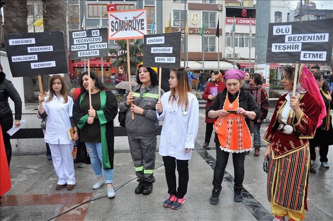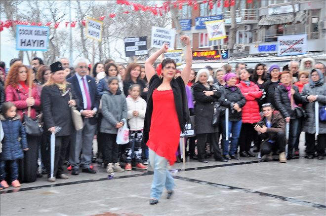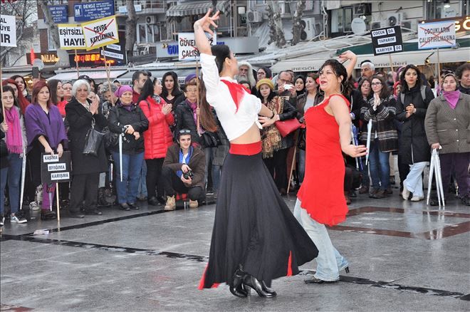 Cumhuriyet alanında toplanan kadınlar şarkılar söyleyip alkış ile tempo tutarken, Kent Konseyi Kadın Meclisi Başkanı Semiha Aydın ile Kent Konseyi Kadın Dayanışma Merkezi Başkanı Bahar Güzel günün önemine değinen konuşmaları ardından ?Bizim Çocuklar? kültür ve sanat evi tarafından hazırlanan özel dans Show gösterisi heyecanla izlenip, alkış yağmuru ile ıslatılırken, program Çınarlı Çağdaş Gençlik derneğinde oluşturulan ?Bizim Çocuklar, Ritim? ekibinin gösterisi ile devam etti.