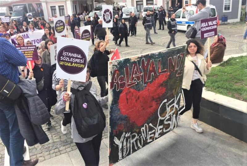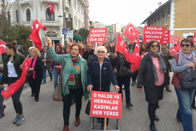 Yüzlerce kadının yürüdüğü Cumhuriyet alanında yapılan konuşmalar coşkulu alkışlarla karşılık bulurken, Özellikle Kadın Dayanışma Derneği tarafından öldürülen kadınların isimlerinden oluşturulan yün yorgan büyük ilgi çekti.