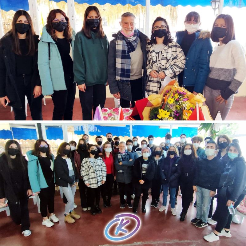 Bandırma Kavram Anadolu Lisesi öğrencileri, “Yeşilçam efsanesi” Ahmet Mekin’i, yaşadığı Ocaklar Mahallesi’nde ziyaret ettiler.