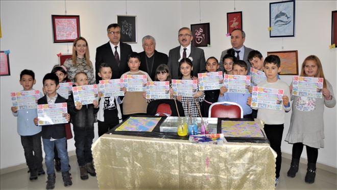 Açılış sonunda okul idaresi tarafından açılışa katılan Kaymakam Faruk Bekarlar,Milli Eğitim Müdürü İsmail Yılmaz ve Özcan Kılınçay´a birer Ebru eseri hediye edildi.