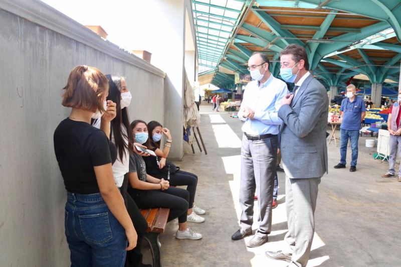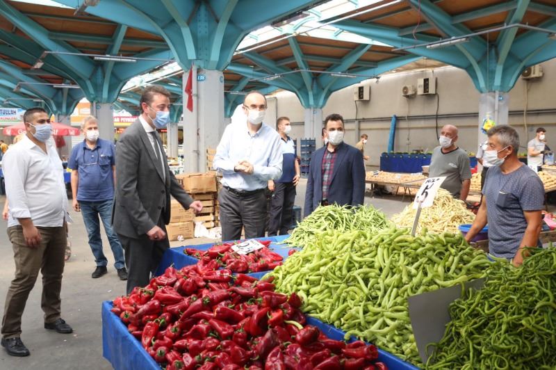Belediye Başkanı Av. Tolga Tosun, Kaymakam Günhan Yazar, İlçe Emniyet Müdürü Soner Duran’la birlikte Kapalı Pazar Yerini ziyaret ederek esnafı ve vatandaşlar Pandemi kurallarına uyma konusunda uyarılarda bulundular.