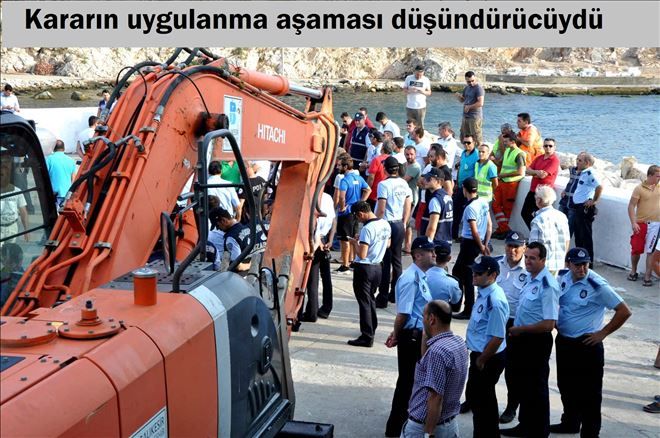 Büyükşehir´in Kaymakamlık talimatı ile yıkıma geldiği Erdek´te kararın uygulamaya konması süreç anlamında düşündürücü idi. 24 Ağustos 2016 olarak belirlenen süreç öncesi Büyükşehir´e bağlı Fen İşleri Daire Başkanlığı İş makineleri Erdek girişinde konuşlandı. Saat 17.00 de mesailerin sonlanması ardından harekete geçen İş makineleri saat 17.10 da kalabalık bir zabıta gücü ile Erdek Balıkçı barınağına girerek yıkım kararını uygulamak istedi.