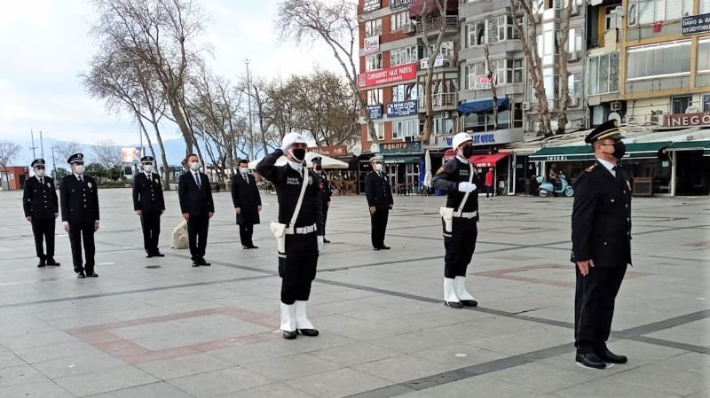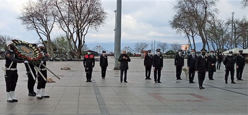 Bandırma'daki törende sınırlı personel ile gelinen anıt'ta ilçe Emniyet Müdürü Soner Duran tarafından anıt'a çelen sunumunda bulunuldu.