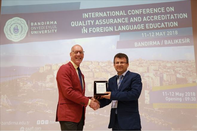 Yabancı dil eğitiminde kalite ve akreditasyonun önemine vurgu yapan Rektörümüz Prof. Dr. Süleyman Özdemir konuşmasının sonunda Düzenleme Komitesi Başkanı Dr. Donald Staub ve Konferans Koordinatörü Öğr. Gör. Kazım Ar´a katkılarından dolayı üniversitemiz adına plaket takdiminde bulundu. Konferans Düzenleme Komitesi Başkanı Dr. Donald Staub´da Rektörümüz Prof. Dr. Süleyman Özdemir´e konferansa vermiş olduğu büyük destek nedeniyle teşekkür plaketi sundu.