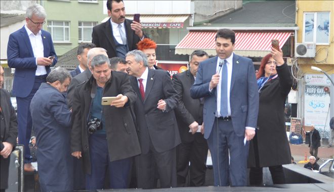 Gönen´de Çarşı Camiinde Cuma namazı sonrası çarşı merkesinde kurdelasını keserek açılışını yaptığı parti seçim ofisi ardından seçim otobüsü "Süvari"nin üzerine çıkan Genel Başkan Gültekin Uysal Gönenlilere seslendi.