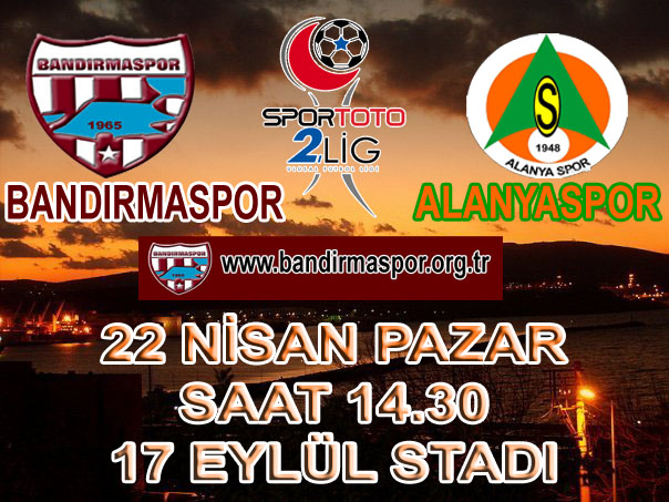 Bandırmaspor heyecan fırtınasının bu günkü durağında Alanyaspor`u ağırlıyor.
