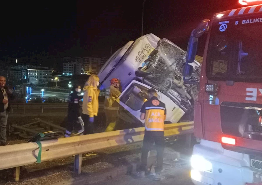 Paşakent Mahallesi Erdek Caddesi Liman Kavşağı’nda meydana gelen tek tarafı trafik kazasında 10 PE 829 Kamyon sürücü C.A., sıkıştığı yerden Bandırma Grup Amirliği personelleri tarafından kurtarılarak sağlık ekiplerine teslim edildi.