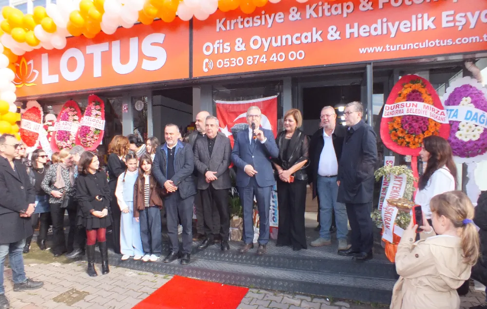 “Lotus”un açılış törenine Bandırma Belediye Başkanı Dursun Mirza, AK Parti Bandırma İlçe Başkanı Göksel Karlahan, belediye meclis üyeleri Mehmet Doğan, Münir Dilek ve Abdullah Çolak, Bandırma Ticaret Odası Başkanı Bahadır Çolak, Bandırma Belediyesi eski başkan yardımcısı Ozan Onur ve diğer konuklar katıldı.