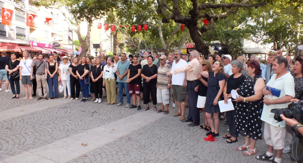 Erdek'te Cumhuriyet alanındaki anma programı saygı duruşu ve istiklal marşının okunması ile başladı. Daha sonra okunan bildiride duygulu anlar yaşandı.