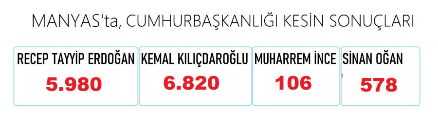 2023 Cumhurbaşkanlığı ve 28. dönem TBMM seçimlerinde 68 sandıkta oy kullanılan Manyas'ta CHP önde çıktı.