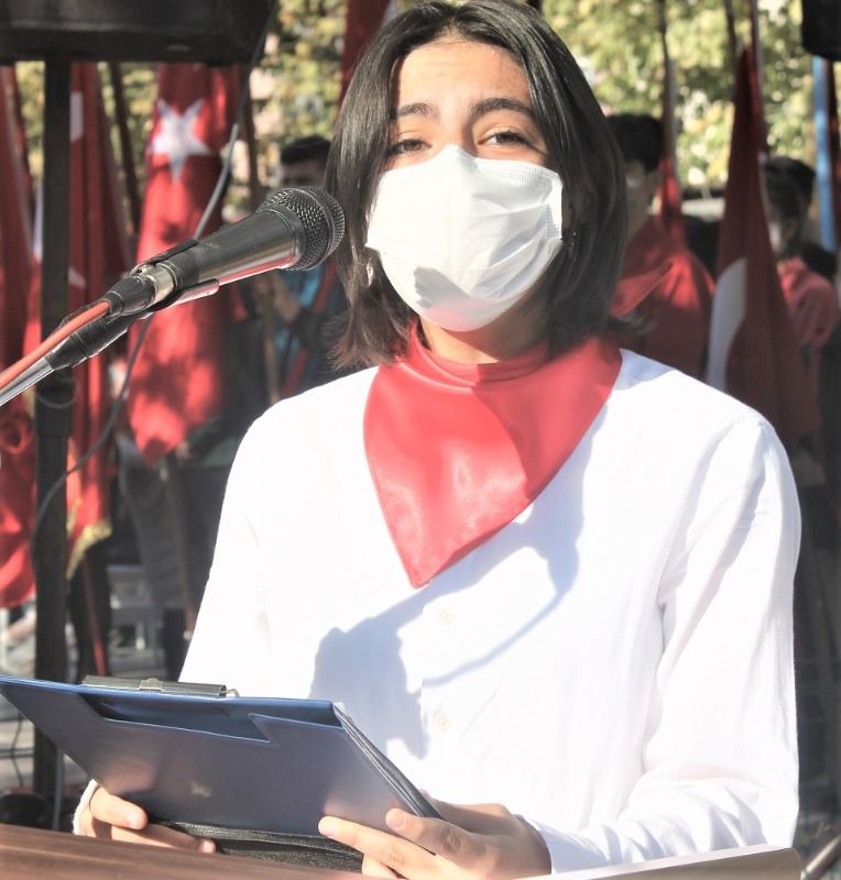 Saygı duruşu ve İstiklal Marşının okunması sonrası Kaymakam Çelik günün anlam ve önemini belirten konuşmasında "2000'li yılların ilk çeyreğine yaklaştığımız bu dönem de Türkiye Cumhuriyeti herkesin malumu olan dünya devletleriyle ayni lige çıkmak şöyle dursun, yaptığı insani yardımlarla ahlaki açıdan ve Dünya'nın pandemi nedeniyle duraksadığı dönemde Avrupa'nın en çok büyüyen 2. ülkesi olması açısından iktisadi açıdan bu ülkelerin çok ilerisinde bir performans sergilemektedir. Pek çok mazlum devletin Dünya’ya haykıran sesi yine Türkiye’miz olmuştur."