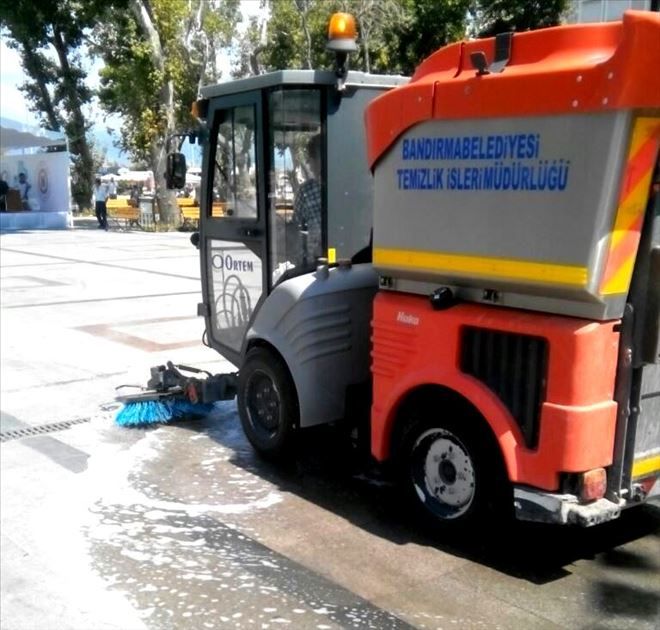 Bandırma Cumhuriyet Meydanı, Belediye Temizlik İşleri Müdürlüğü ekiplerinin yerine getirdiği temizlik ve bakım çalışmalarıyla sürüyor.
