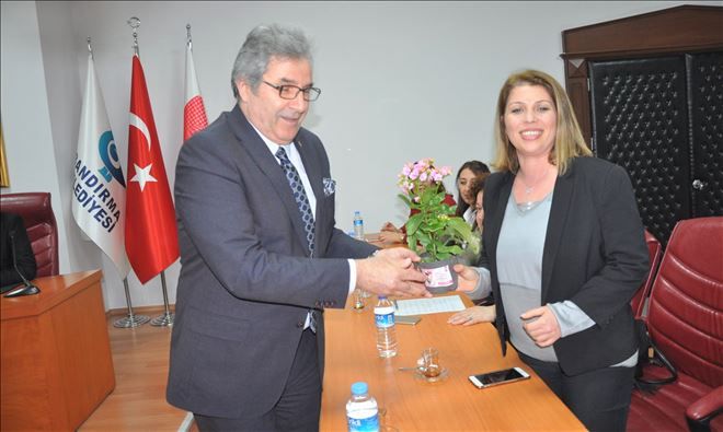 Bandırma Belediye Başkanı Dursun Mirza, meclisin son toplantısında, ?8 Mart Dünya Emekçi Kadınlar Günü? nedeniyle mecliste görevli üyeler ve belediye personeline çiçek verdi. Mirza, kadınlara ?Kalonşa? isimli çiçeği sunarak, günlerini şimdiden kutladı.