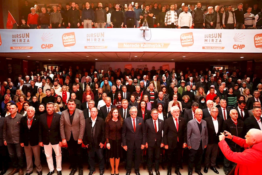 CHP Bandırma İlçe Başkanı Mehmet Atak ve CHP’nin yurt dışı örgütlenmesinden sorumlu Parti Meclisi Üyesi Mehmet Tüm’ün konuşmalarının ardından belediye başkan adayı Dursun Mirza’ya söz verildi.