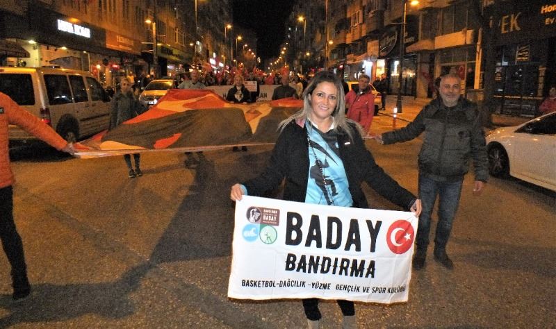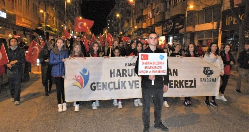 Herzaman olduğu gibi MİGROS kavşağında toplanan binlerce Bandırma'lı Bayrak-Pankart ve Fenerleri ile Cumhuriyet alanına yürüdü.