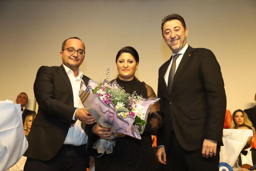 Bu sözün altında kalmayan başkan Tolga Tosun, geceyi onurlandırak koro adına şef Verda Dönmez'e teşekkür çiçeği sunmak için çıktığı sahnede, beklenen yanıtı verdi.