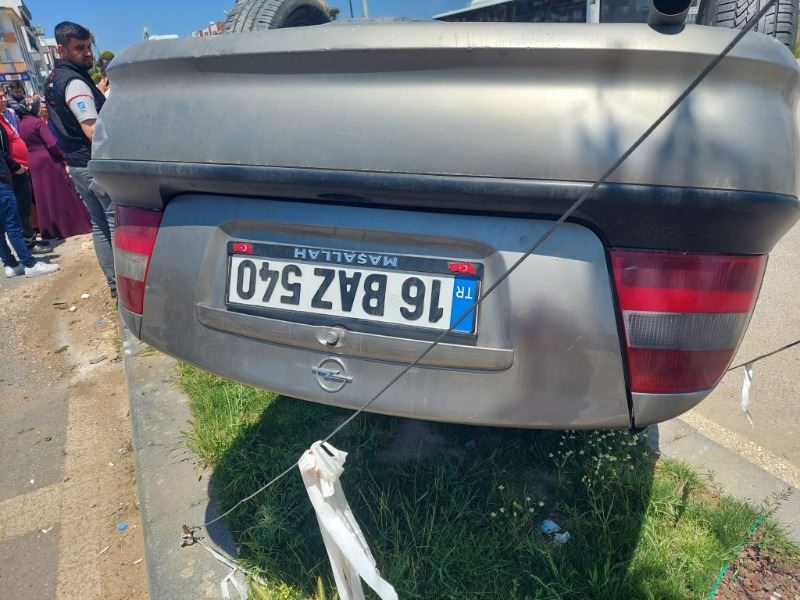 Kazada büyük hasar alan araçlardan 16 BAZ 540 plaka sayılı OPEL otomobil çarpışmanın etkisi ile yolda takla atarak ters döndü.