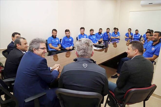 2.lig beyaz grup´ta zirve mücadelesi veren ekibimiz Bandırmaspor bugün Anadolu Üsküdarspor ile yapacağı müsabaka öncesinde Kaymakam Tuncay Sonel, Belediye Başkanı Dursun Mirza tarafından tesislerde ziyaret edilerek moral ve motivasyon sohbeti yapıldı.