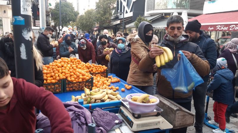 Sarraflar sokağı olarak bilinen Şehit Süleymanbey caddesindeki bu anlık fiyat düşüşü vatandaşlar tarafından hemen karşılık gördü. Seyyar meyveci Gökhan'ın arabası etrafında kuyruğa giren meyve müşterileri tezgahtan seçtikleri muz ve mandalinleri torbalara doldurarak sıraya geçmeleri, gün boyu siftah yapmayan çarşı esnafının şaşkın bakışlarına hedef oldu.