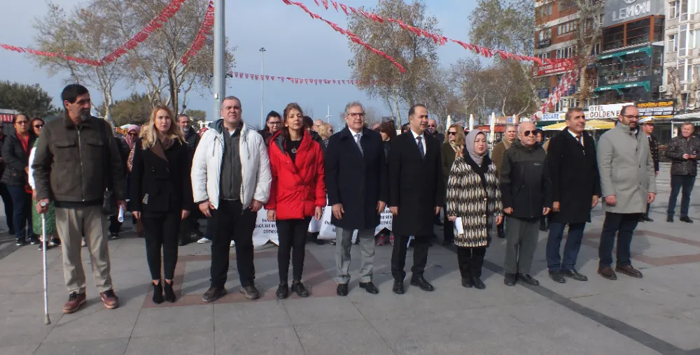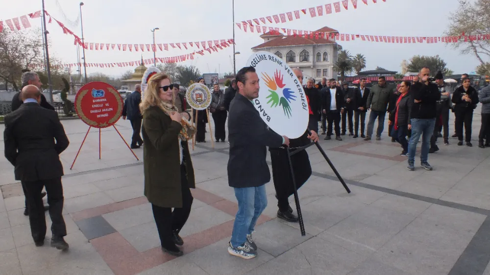 Kaymakam Engin Aksakal ve Belediye Başkanı Dursun Mirza’nın da katıldığı Cumhuriyet Alanı’ndaki etkinlikte, “Bandırma Engelime Renk Ver Derneği” Başkanı Nercü Çalışkan konuştu.