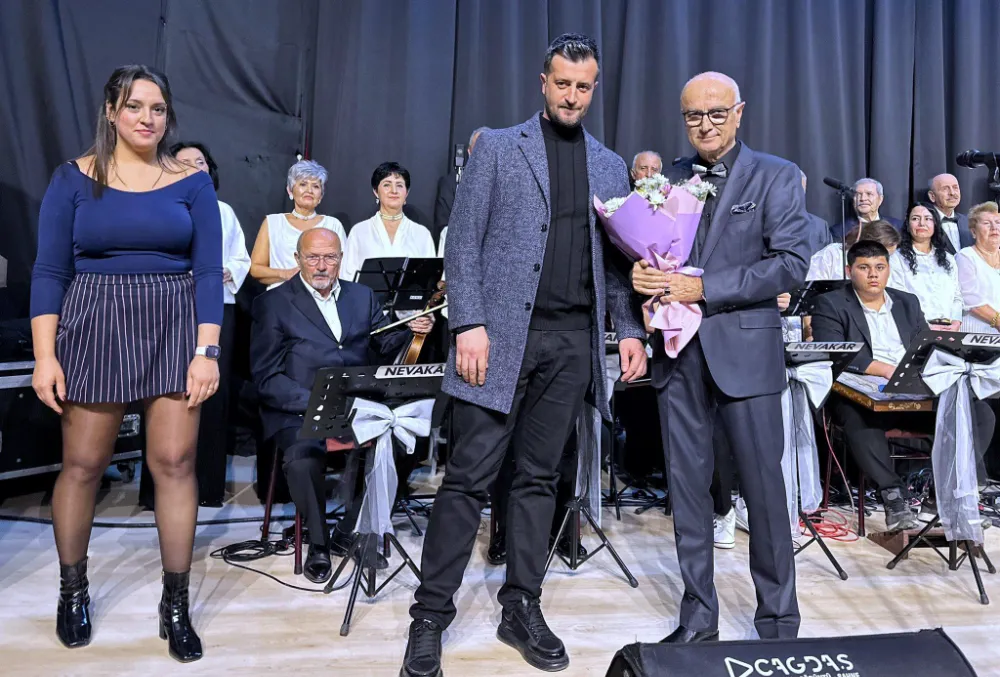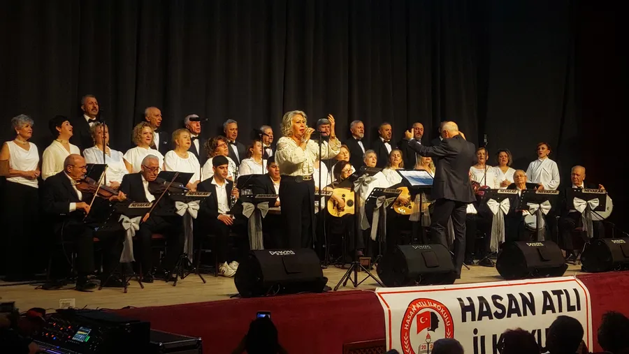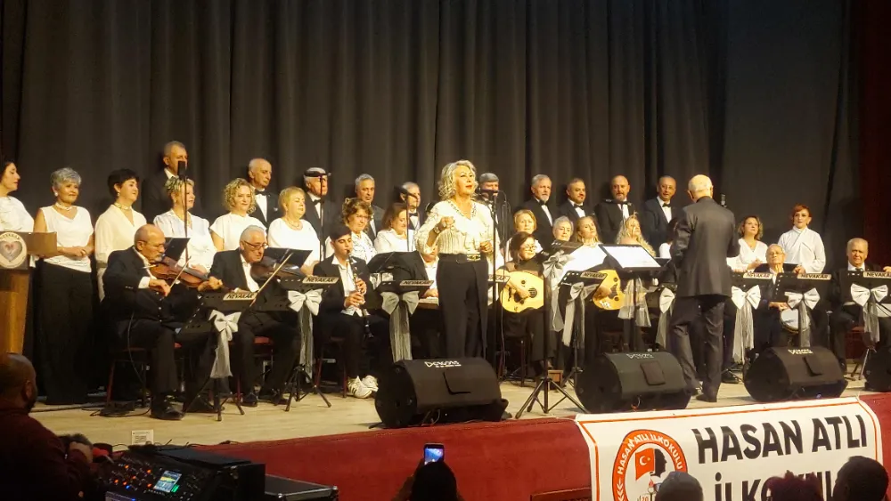Konserde, Hasan Atlı İlkokulu Okul Aile Birliği Başkanı Yasin Toraman ve başkan yardımcısı Yaprak Önder, topluluğun şefi Vedat Sevkal’a çiçek vererek teşekkür etti.