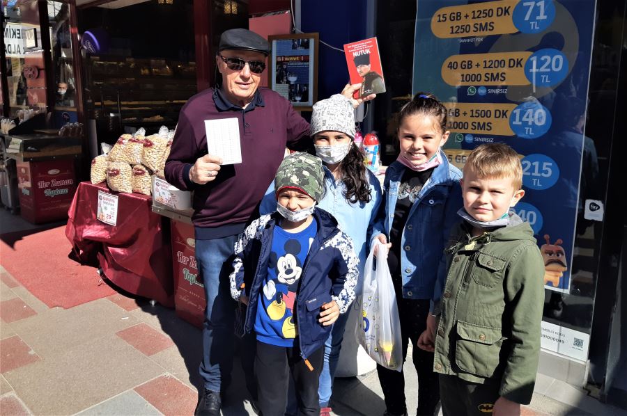İnönü Caddesi’nde, “Tuğba Kuruyemiş”in hemen yanındaki stantta sürdürüyor. Çocukların “Niyazi Dede”si, tamamıyla kendi maaşından karşıladığı kitaplar, küçük oyuncaklar, suluklar(termoslar) ve kitapları, çocuklara çarpım cetvelinden bazı sorular sorarak armağan etmeyi sürdürüyor.