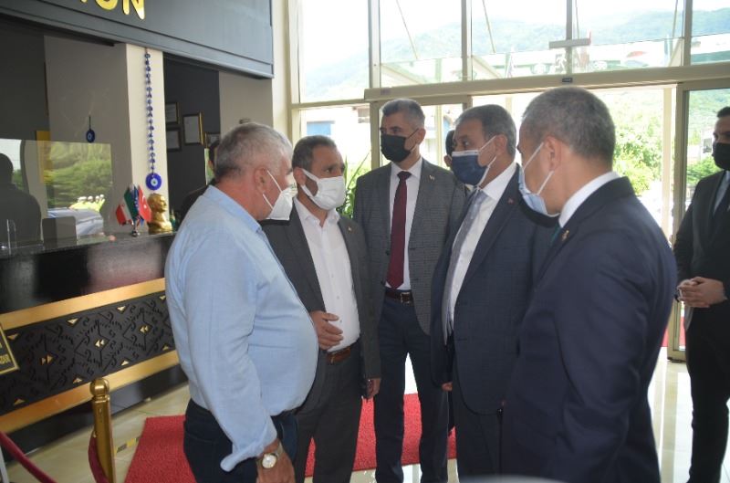 Vali Hasan Şıldak'ın Ocaklar'da gerçekleşen koordinasyon toplantısı için Çetin Otel'e gelişinde Mustafa İlgen ile AKKP Erdek ilçe Başkan yardımcısı Musa Alioğlu karşıladı.