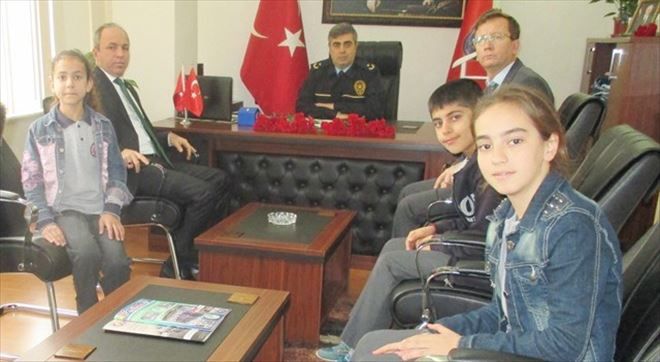 Gönen İlçe Emniyet Müdürü Orhan SİNAV ´ı ziyaret eden Gönen İlçe Milli Eğitim Müdürü İsmail YILMAZ ve Okul Müdürü Sadet MERCAN beraberinde bulunan öğrenciler polis abi ve ablalarına karanfil vererek duygu dolu anlar yaşattılar.