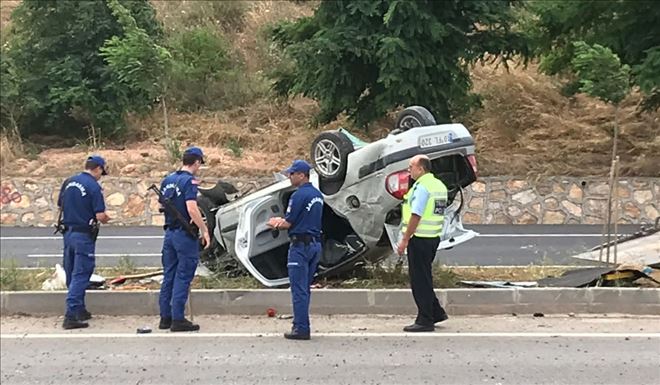 Ali İşçi´nin kullandığı 10 FL 320 plaka sayılı özel otomobil bölünmüş ve düz yolla önüne çıkan köpeği ezmemek için firen yapında feci şekilde takla attı.