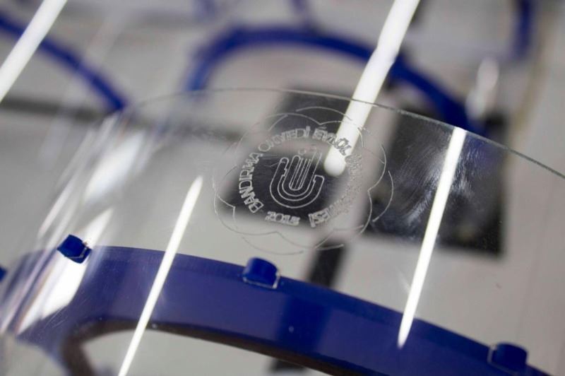 Bandırma onyedi Eylül Üniversitesi, Gönen Meslek Yüksekokulunda, Güney Marmara Kalkınma Ajansı (GMKA) desteğiyle kurulan Maker Laboratuvarında lazer kesim makinesi ile yüz koruyucu siperliği üretilmeye başlandı.