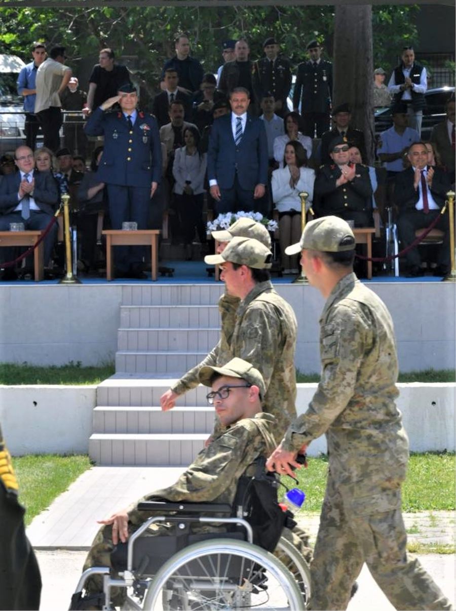 Bir gün süreyle askerlik heyecanı yaşayan engelli gençler Türk Bayrağı ve silah üzerine el koyarak yemin etti. Ailelerinin gururlu bakışlarıyla askerlik yemini eden engelli bireyler katılımcılar tarafından büyük akış aldı. Vatani görevlerini başarıyla tamamlayan engelli askerlerin terhis belgeleri ise Vali Şıldak ve protokol üyeleri tarafından verildi. Belgelerin verilmesinden sonra askerler resmi geçit ile ailelerine duygu dolu anlar yaşattı.