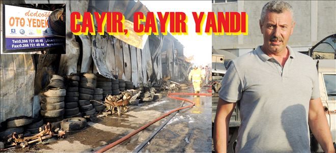 Trafikten çekilmiş araçlanrın parçalandığı işletme konum ve pozüsyon olarak söndürmeye elverişli olmadığı için tamamen yandı.