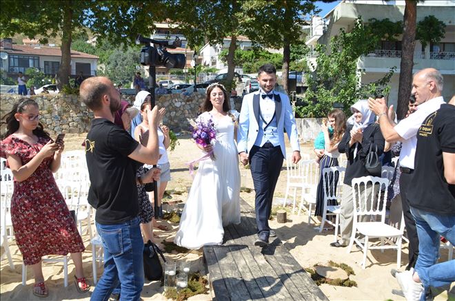 Janti Erhan Met yeğeni Barış Met ve Özge Çapak´ın yaşamlarını birleştirecekleri nikâh törenleri için organizasyon firması ile yaptığı anlaşma gereği Tatlısu Liman kampı kumsalına Nikâh platformu hazırlandı.