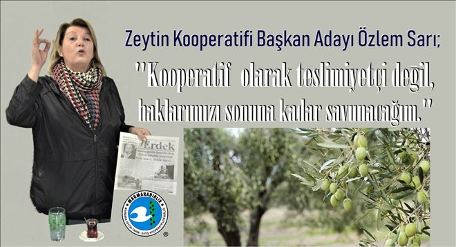 Marmarabirlik´e bağlı 162 sayılı Erdek Zeytin Tarım Satış Kooperatifi´nin seçimli olağan genel kurul toplantısı 17 Şubat 2019 Pazar günü yapılacak. Genel kurul, saat 11.00´de başlayacak. Genel kurulda F. Özlem Sarı ve Abdullah Şenol´a ait yönetim kurulu aday listeleri yarışacak.